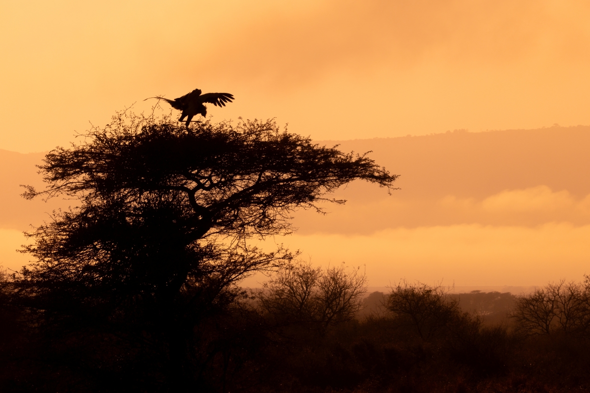 Sekreterarfågel i soluppgången