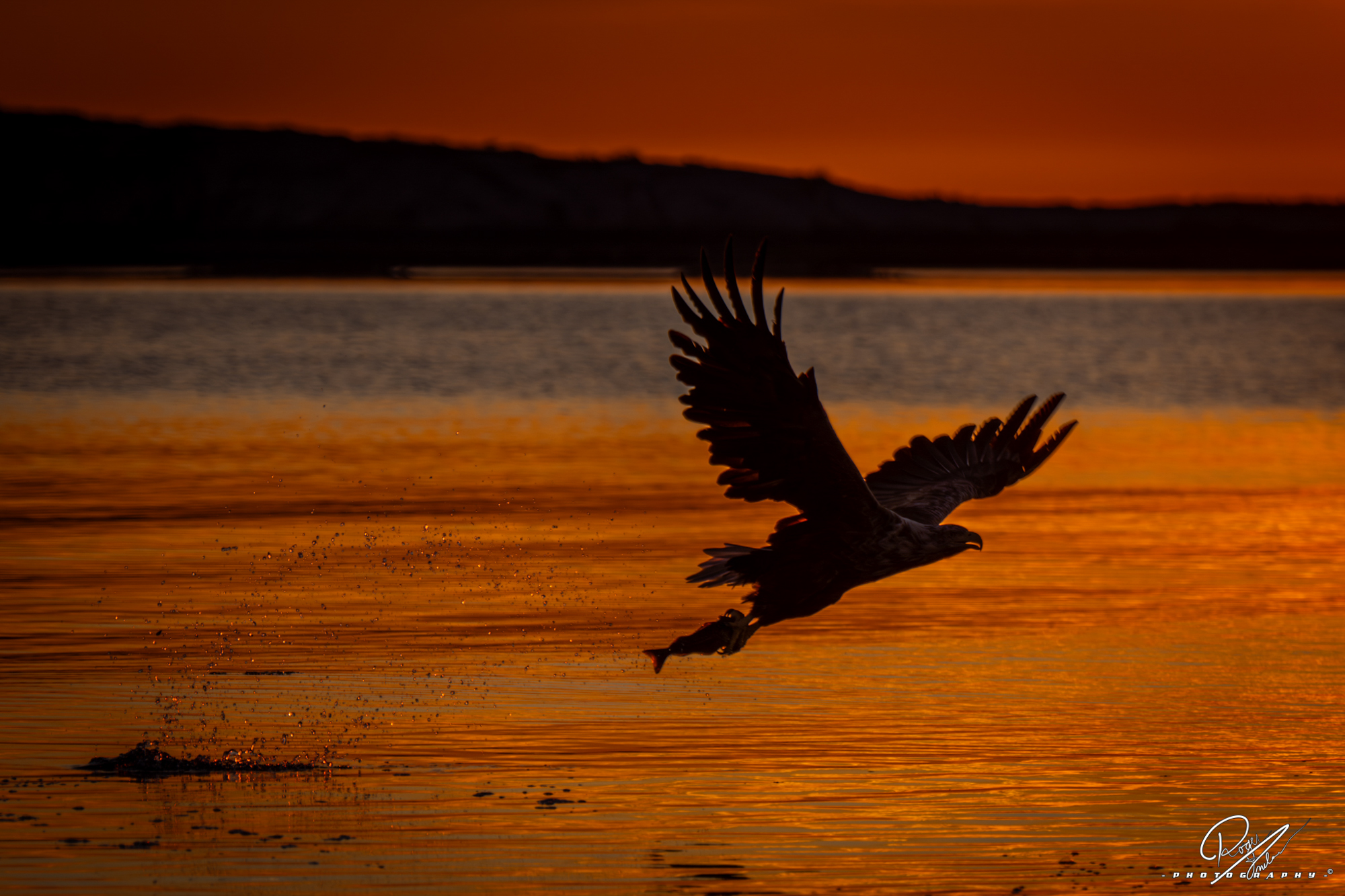 Havsörn i solnedgång